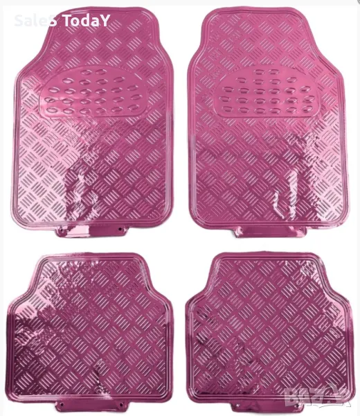 Розови стелки за кола, Гумени стелки, универсални, с алуминиев ефект, 4 бр