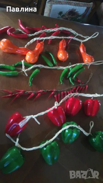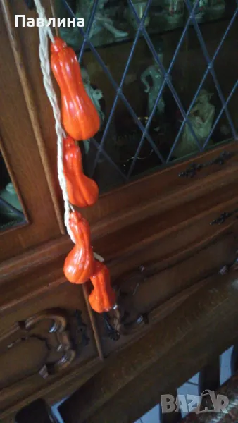 Връзка от 4 бр. тиква цигултка, 4 бр. чушки на връв, люти чушки връв - цена за една връзка 15 лева.