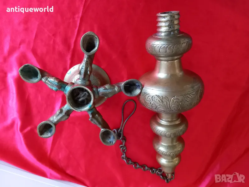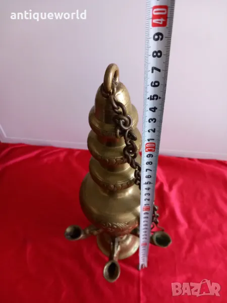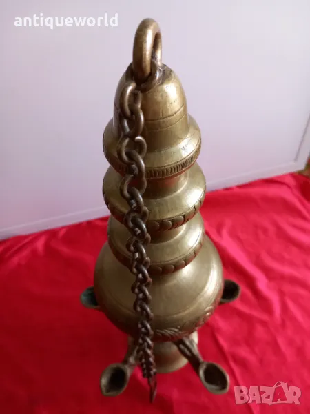 Много Рядка Стара Красива Голяма Масивна Бронзова Будистка Храмова Настолна Маслена Лампа с Възможност за Окачване.Тегло над 2кг!