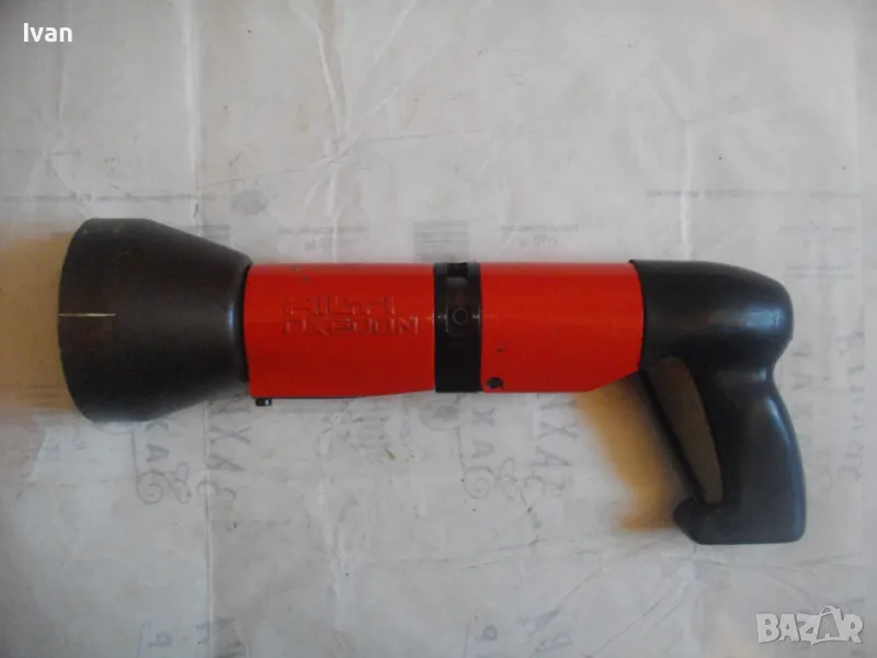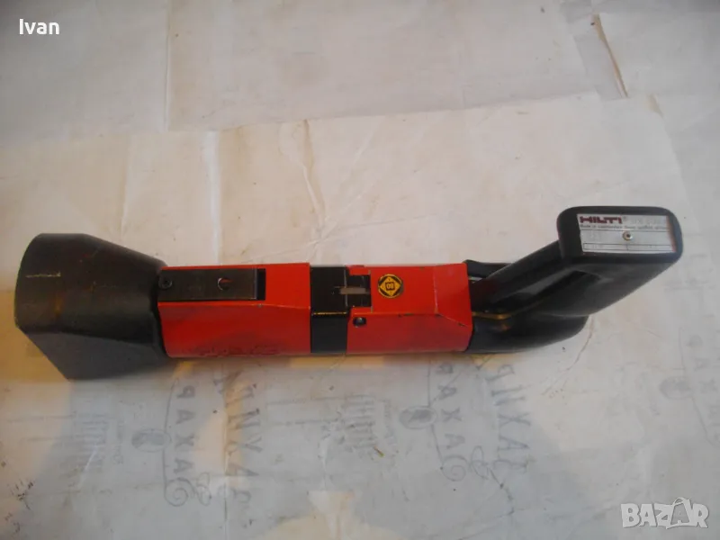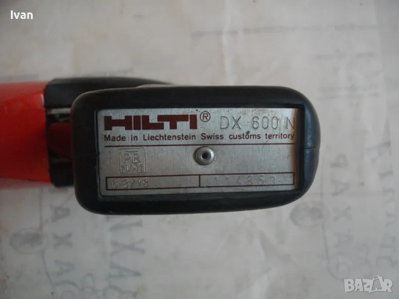 HILTI DX600 N - оригинален Лихтенщайн уред за бърз директен монтаж в бетон, метал и други повърхности посредством заряд капси. Много запазен външен вид, почти нов. Работно състоняие - С ПРОБЛЕМ. Има застопоряване блокаж някъде по механизмите на буталата в задна част и не може да се отваря и зарежда. Предполагам има заседнала капса или извадена пружина за придвижване въртеливото движение на корпуса над буталата. Марка и модел на инструмента - HILTI DX 600 N. Оригиналното производство на Хилти в Лихтенщайн - маркирано - Made in Liechtenstein. Инструмента е с много запазен външен вид, в техническо/работно състояние - описания по-горе проблем. Модела Хилти работи с капси калибър 6,8/18 и пирони от серия S12, размери 16 мм, 22 мм, 27 мм, 32 мм, 37 мм, 42 мм, 47 мм, 52 мм, 62 мм, 72 мм, 82 мм, 97 мм. Тегло на машината - 4,9 кг.