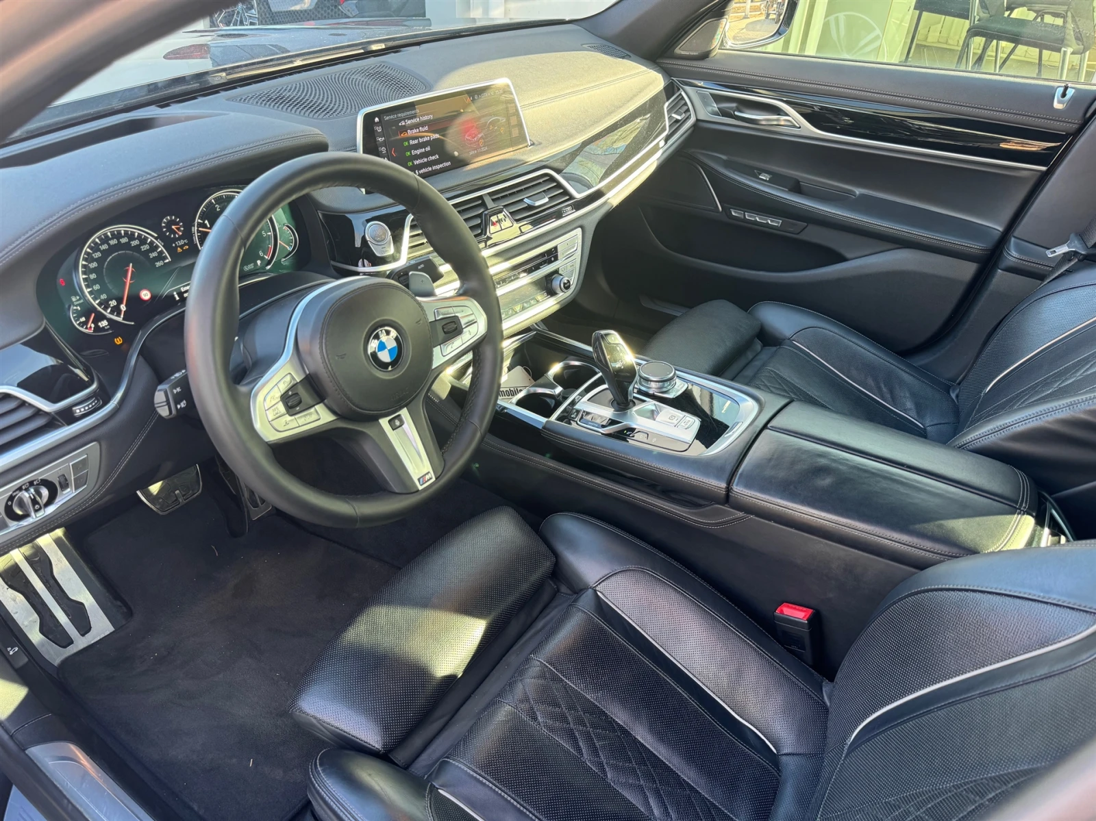номер на офертата: 166253 Клиентски автомобил със сервизна история при нас. Наличен за оглед в М Кар. За повече информация: 0886 18 50 18 - Андрей Минчев Цвят: SINGAPUR GREY METALLIC тапицерия: EXCLUSIVE NAPPA LEATHER EXT. /BLACK Комуникация Navigation package ConnectedDrive Навигационна система Professional Head up дисплей (Прожектиране на данни на предното стъкло) WLAN Hotspot Озвучителна система HARMAN/KARDON Navigation Assistant (RTTI) Smartphone Integration Ключ BMW Display key Комфортна телефония с безжично зареждане CD Player Мултифункционално арматурно табло Управление с жестове BMW Gesture control Concierge Services ConnectedDrive Услуги Remote Services Спешно повикване Телеуслуги Версия и пакети М Спортен пакет Интериорни лайсни BMW Individual черни Pianolac Външни декоративни елементи BMW Individual Shadow Line, гланц М Аеродинамичен пакет Екстериорно оборудване Електрически панорамен люк 20" M Алум. джанти тип Double-spoke 648M2-цв. ,разл. разм. г. отпр. /отзад, run Електрически прибиращ се теглич Слънцезащитни стъкла Гуми със система за авариен режим Интериорно оборудване Активно проветряване на предните седалки Електрически предни седалки тип Comfort Масажна функция за шофьора и пътника до него M кожен волан Soft Close - автоматика на вратите Автоматичен четиризонов климатик Програмируемо отопление с дистанционно Система за комфортен достъп Вътрешно осветление Пакет Heat Comfort, отпред Разделяне на задната седалка Таван антрацит BMW Individual Секретни болтове Светлини и видимост Адаптивни LED-фарове Асистент за дълги светлини LED-фарове за мъгла Сигурност Камера за обратно виждане Камери " Птичи поглед" Асистент за шофиране Plus Алармена система Асистент за паркиране Активна защита на пешеходци Контрол на налягането в гумите Други Спортна автоматична скоростна кутия