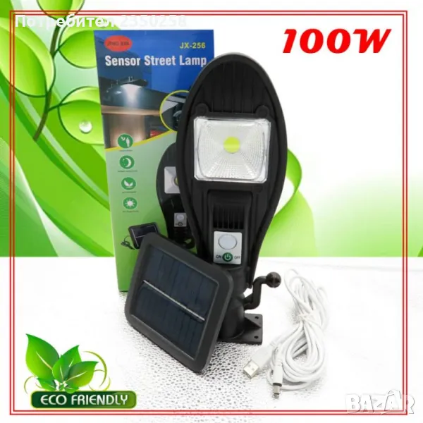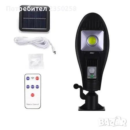Уникална соларна лампа 100W с подвижен соларен панел с кабел + дистанционно + стойка и крепежни елементи.