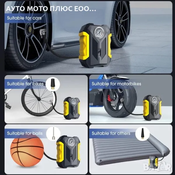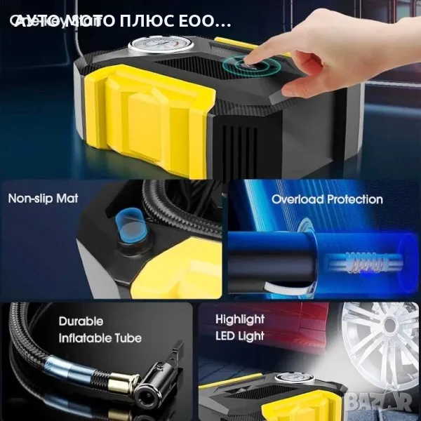 Този въздушен компресор ви позволява лесно да напомпате гумите на вашия автомобил, мотоциклет или велосипед, без да се налага да търсите бензиностанция или механичен сервиз. Полезен е и за надуване на топки, дюшеци и други надуваеми предмети.