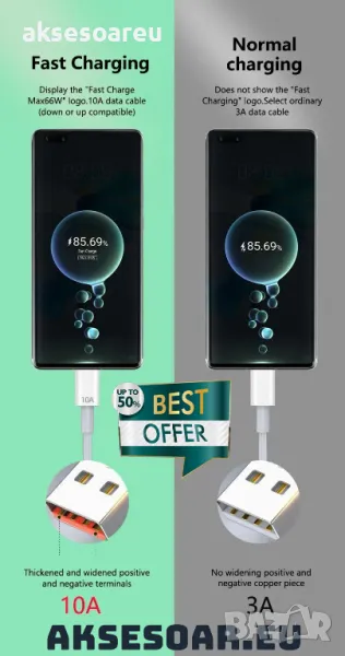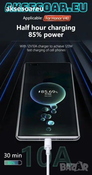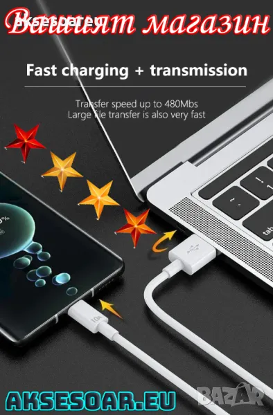 бързо зареждащ кабел за по голямо удобство. Може да го използвате като дълъг