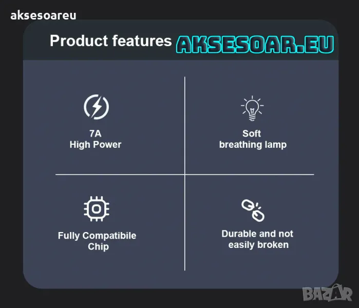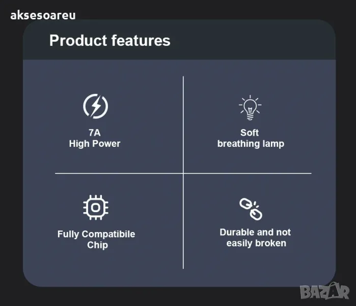 Поддържа 7 A супер бързо зареждане и пренос на данни.