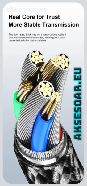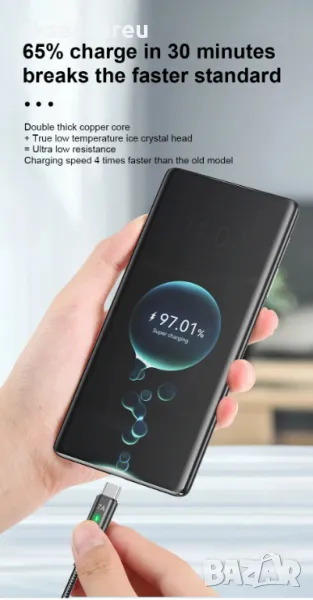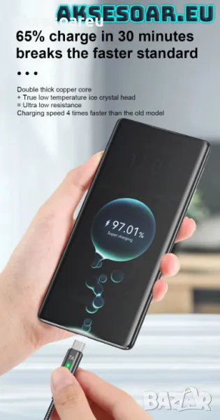 за бързо зареждане, този кабел за данни може да достигне само 15W мощност за