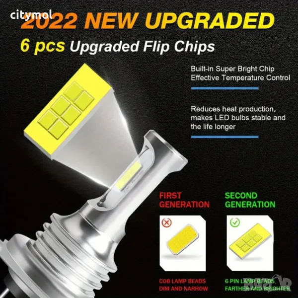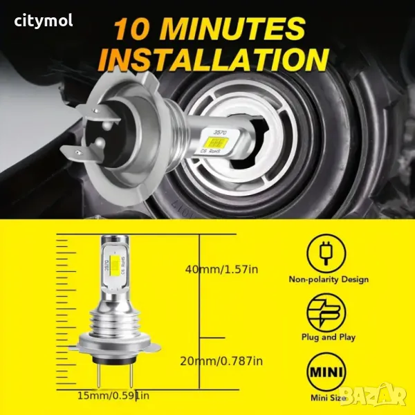 Запознайте се с бъдещето на автомобилното осветление - "Mini LED Крушки за фарове, H7 3570 - Комплект", вашата инвестиция в безопасност и стил на пътя.