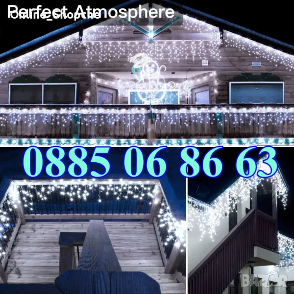 коледни лампички тип завеса 3 м с блиц ефект д
