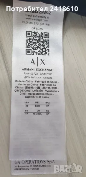 Armani Exchange A/X Mens Down Jacket Size XS НОВО! ОРИГИНАЛ! Мъжко Пухено Яке!