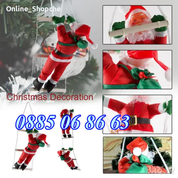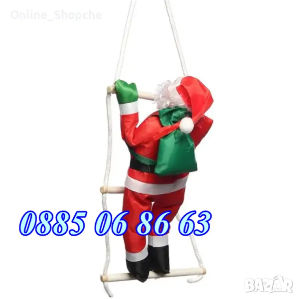 Катерещ се Дядо Коледа на стълба - чудесен коледен декор за дома. Коледна декорация подходяща за окачване на балкони и тераси. Играчката представлява кукла с форма на любимия старец Дядо Коледа, който се изкачва по стълба, за да донесе подаръци на децата.