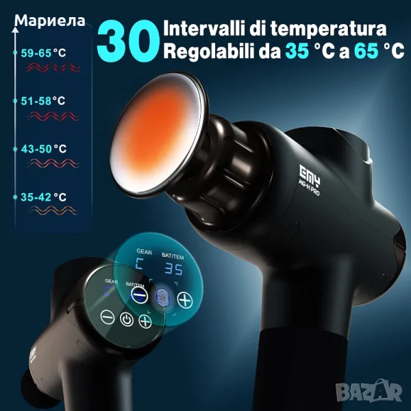 Уред за масаж тип пистолет, професионален пистолет с регулируема функция за нагряване от 35 до 65°C