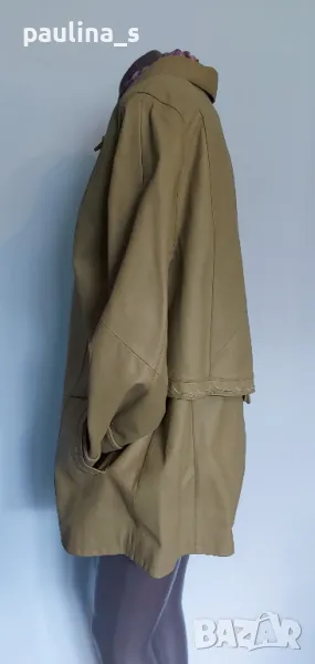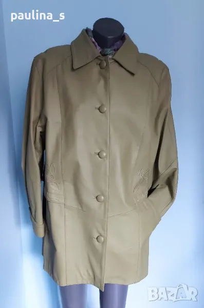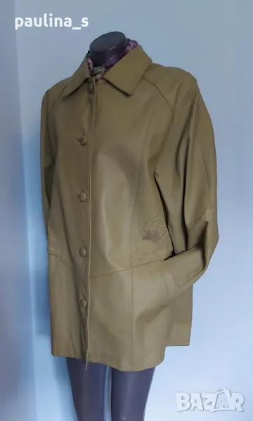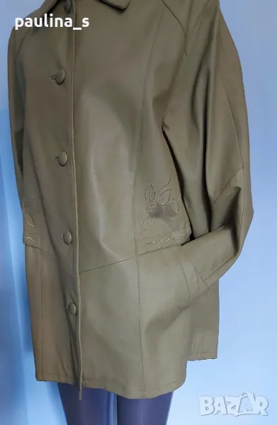 1️⃣. Колаж / XL / 2XL - Естествена кожа / Дамско кожено манто с декорация от бродерии от естествена кожа "Vera Pelle". Цената е крайна 139,99лв / 68 евро. Кожата е свински бокс, купено е за 190 долара. Моделът е с декорации и платка на гърба, съобразено с размера. Цвят светла "Маслина", никога не е носено, леките бръчки са от съхранението.
