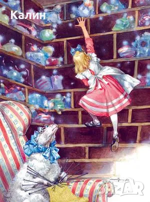 Огледалния свят“ на на британския писател Луис Карол е в отлично състояние, с твърди корици, голям формат и се предлага на