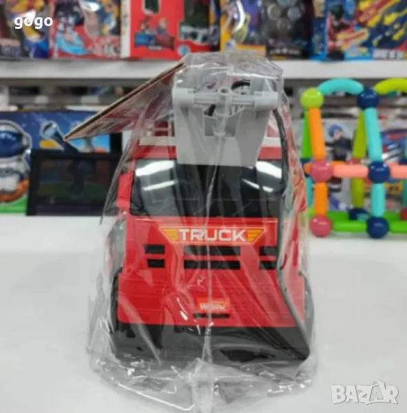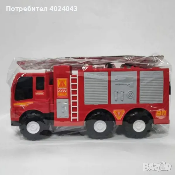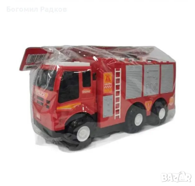 Тип: Пожарна кола с функция за пръскане на вода;Цвят: Червен;Материал: Здрава и безопасна пластмаса;Размер на играчката: 37,5 см х 15 см х 23 см;Размер на опаковката: 39,5 см х 35 см;Подходяща възраст: Над 3 години.