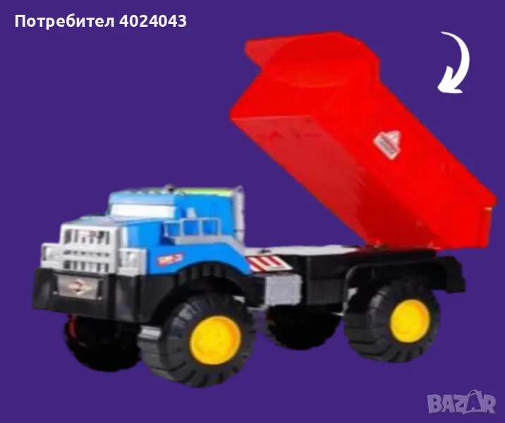 Голям детски товарен камион с повдигащо ремарке