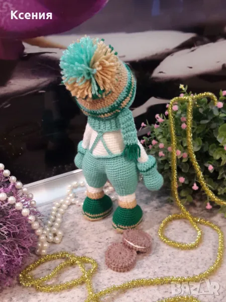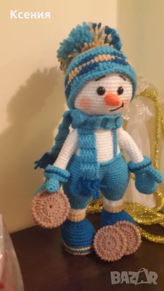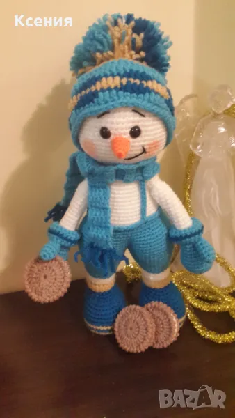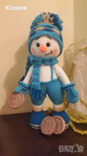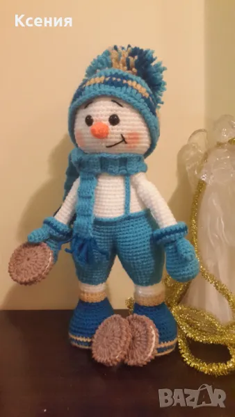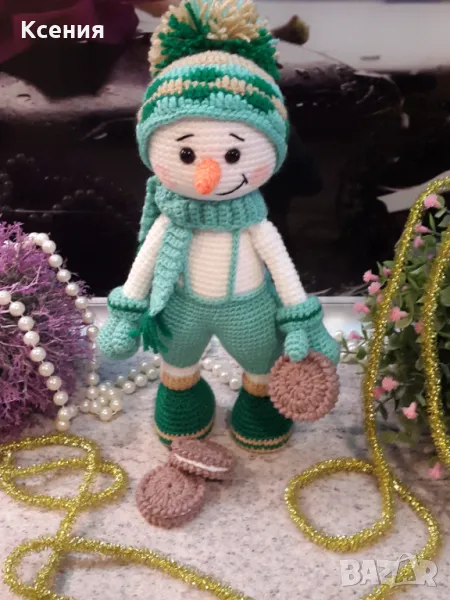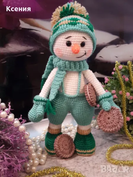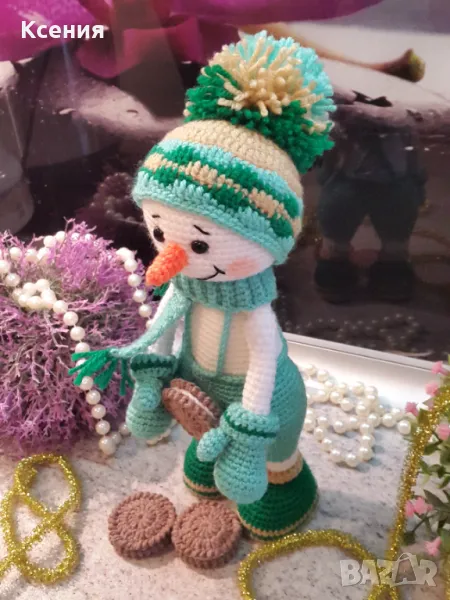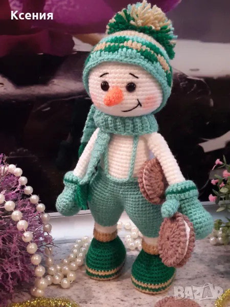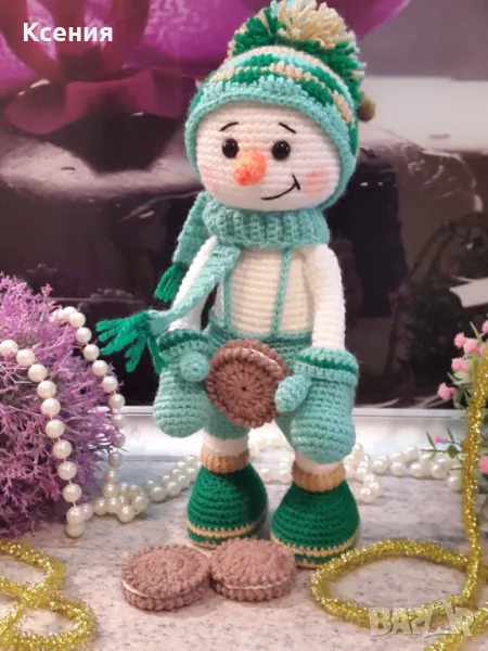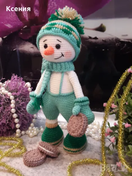 подарък за Коледа. Снежен човек с бисквити ORERO, Ръчно изработена, Плетена играчка → Обява 48054537