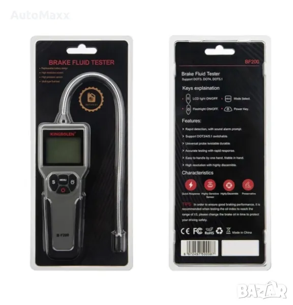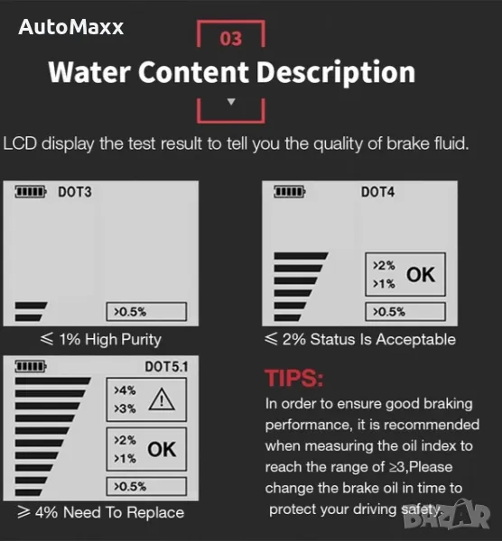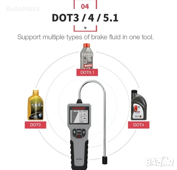 Тестер за спирачна течност, професионален детектор за анализатор на влага на спирачна смазка за автомобили и мотоциклети Интелигентен, инструмент за автоматично диагностично тестване за DOT 3 / DOT 4 / DOT 5.1