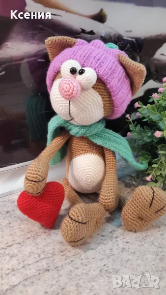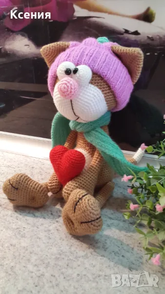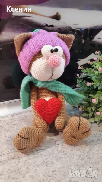 Подаръци за Св. Валентин. Плетена играчка Котка /Марсик/, Ръчно изработена → Обява 48055111