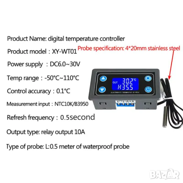 XY-t01 цифров регулатор на температурата с висока прецизност, регулатор на температурата за охлаждане и отопление