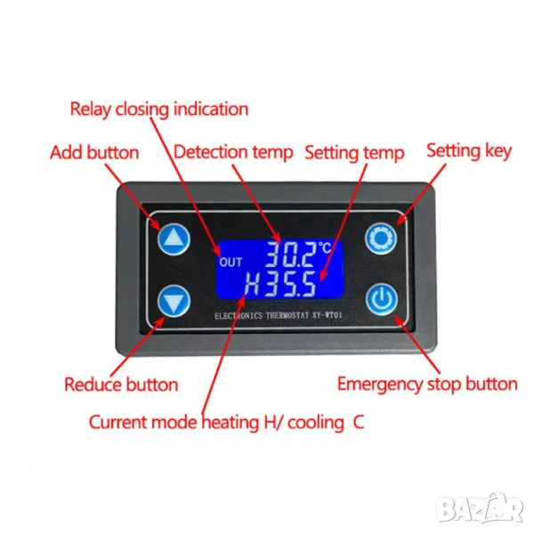 Когато температурата на откриване е ≥ зададената температура, релето се изключва и отоплителното оборудване спира да работи;