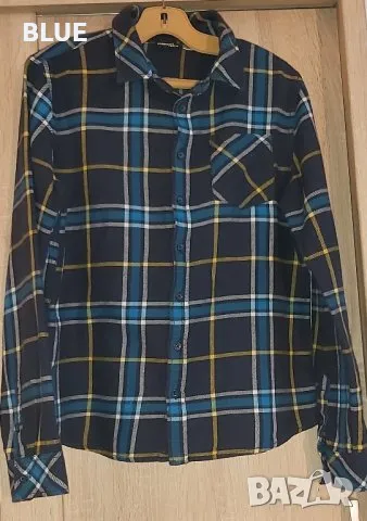 Риза с дълъг ръкав и тъмносин тип дънков панталон за момче 12-13 год. Дрехите са маркови, стилни и с високо качество.