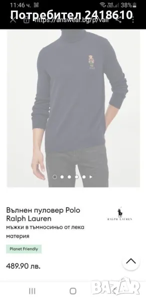 Оригинален мъжки вълнен пуловер , поло - нов!