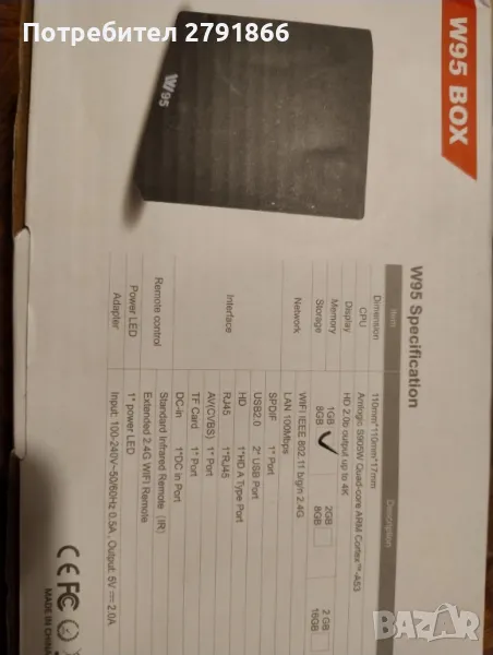 W95 4K Android 7.1 TV Box, 2018 Model C Smart TV Box, Amlogic S905W Quad-Core, 1GB RAM & 8GB ROM, 4K Ultra HD, H.265/WiFi 2.4GHz Smart TV Box, поддръжка на HDMI и AV изход с дистанционно управление Чисто нов продукт, неупотребяван.