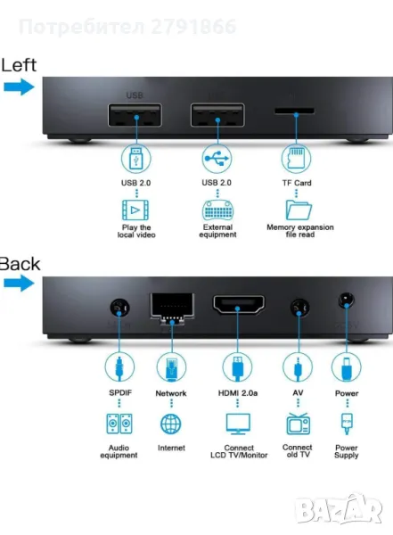 - AMLOGIC S905W НАЙ-ЧИП: Мощен 64-битов процесор, с 1GB DDR3 памет и 8GB SSD памет, правят големите игри по-гладки, 802.11n Wi-Fi и RJ45 Ethernet опция.
