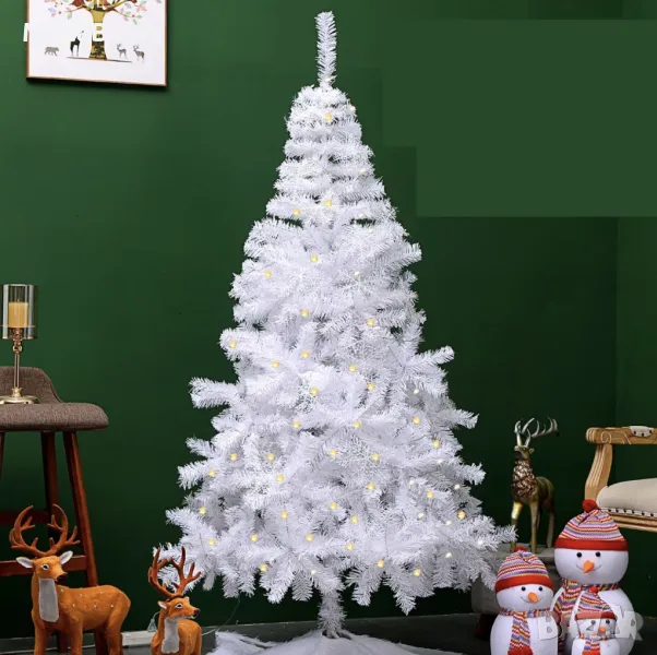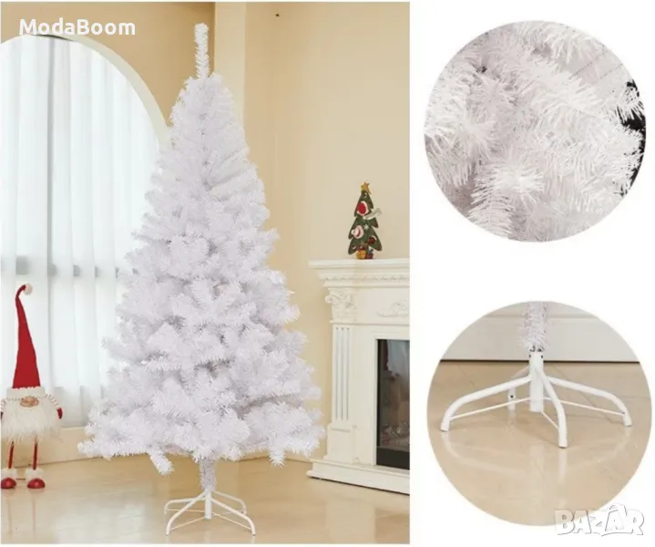 Коледна Снежно бяла или зелена елха с шишарки + пласмасова стойка ТОП ПРЕДЛОЖЕНИЕ → Обява 48056724