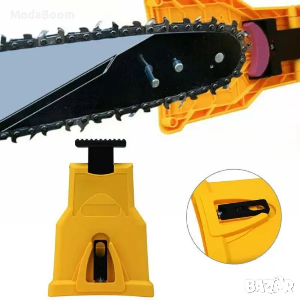 Компактна острилка за бързо заточване на верижен трион / Материал на изработка: първокласна висококачествена ABS пластмаса; 2 отвора за фиксирано заточване – единият фиксиран, а другият се движи напред-назад; Подходящ за вериги 14" / 16" / 18" / 20"; Лек