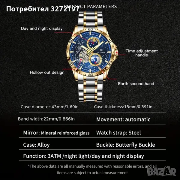 2024,GLENAW Луксозен мъжки автоматичен часовник,неръжд.стомана,водоустойчив → Обява 48058509