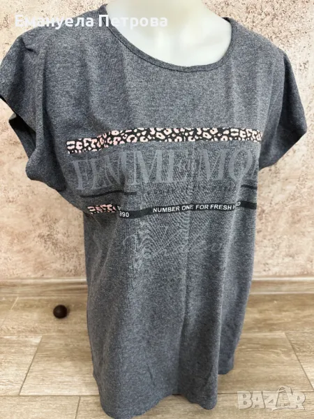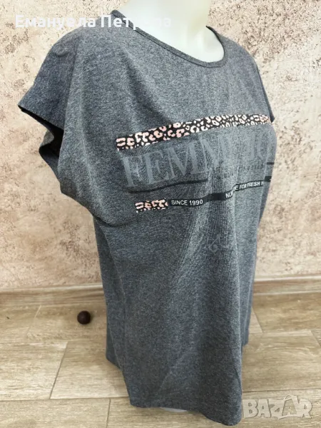 Дамска тениска с принт - сив/черен цвят → Обява 48058765