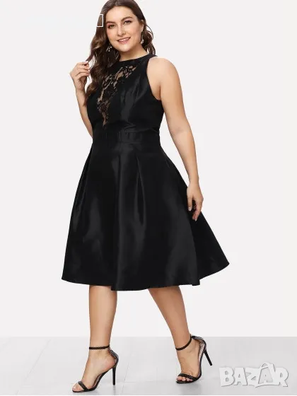 Сатенена рокля с деколте от дантела размер 3XL → Обява 48058991
