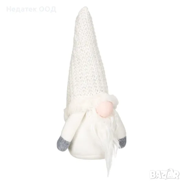 Коледна декоративна фигура на гном на Дядо Коледа с бяла плетена шапка и дълга брада.