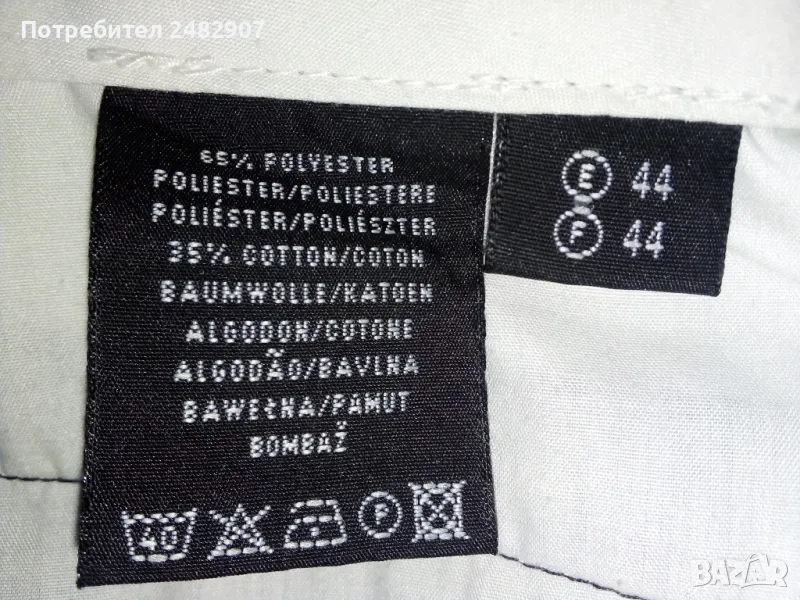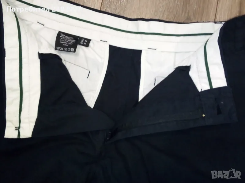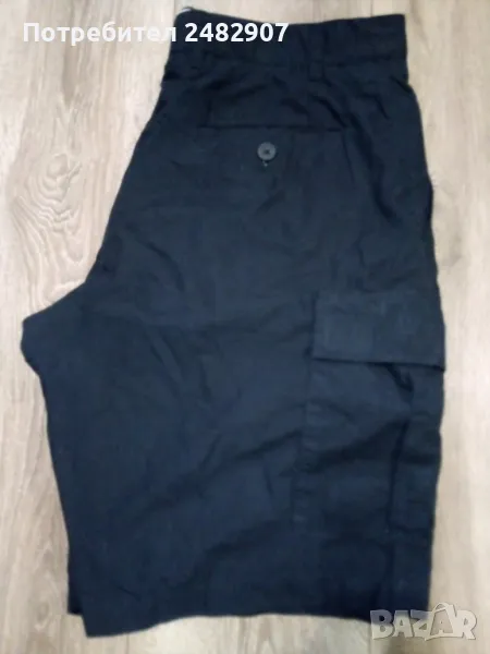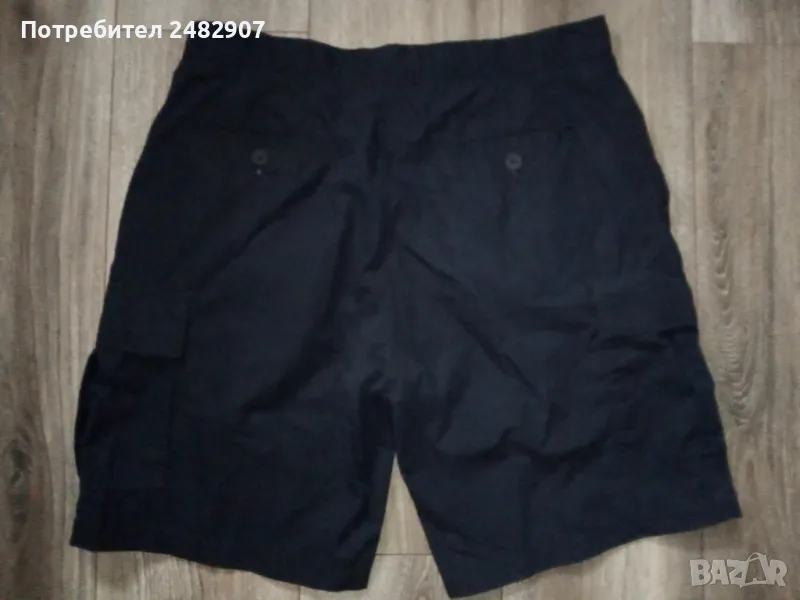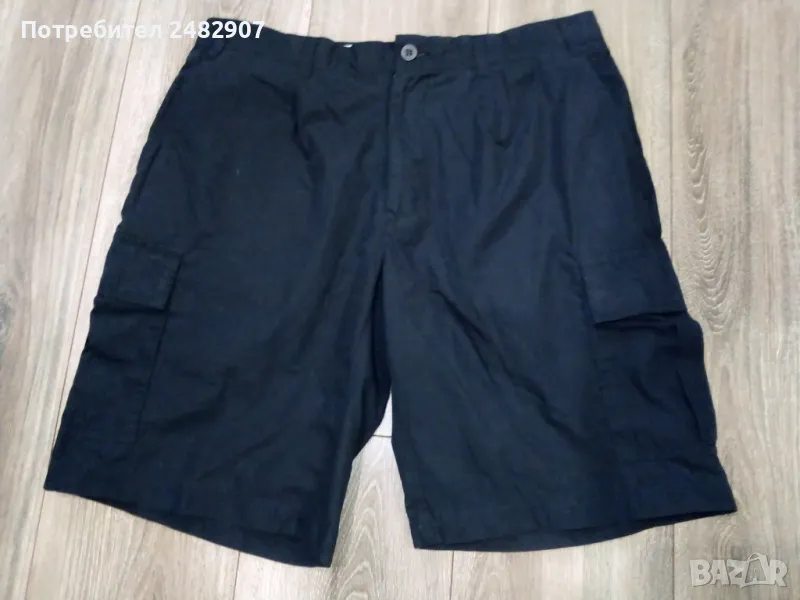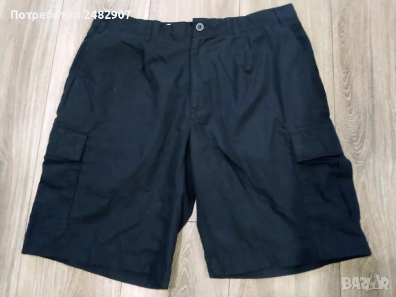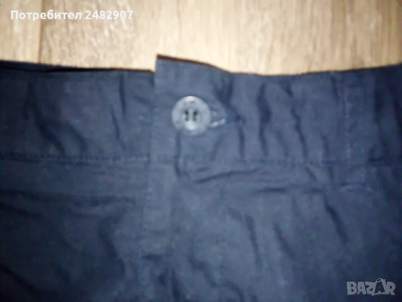 Мъжки къси панталони, размер 44. Съдържат 65 % полиестер и 35 % памук. Ширина в талията - 43 см, дължина от талията до чатала - 27 см, дължина от талията до долу - 51,5 см, ширина на крачола в долната част - 30 см. Много запазени, почти не са използвани, закопчаване с цип и копче отпред, с два задни и четири странични джоба.