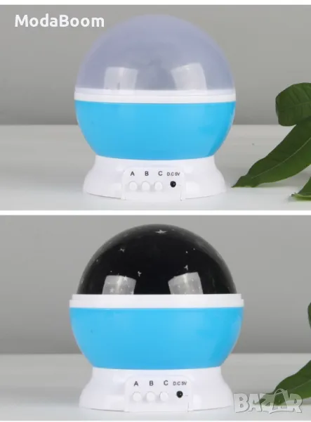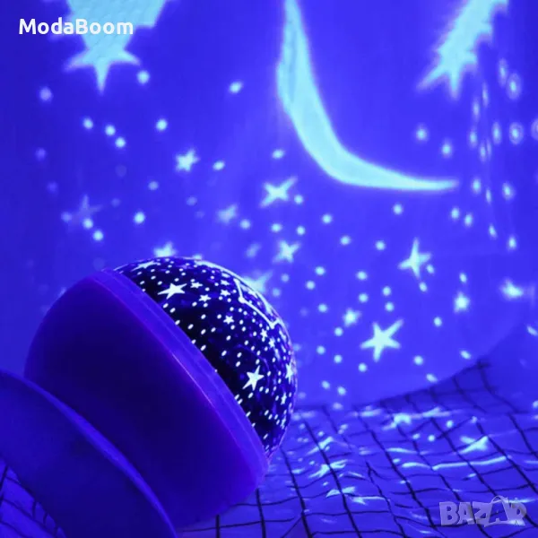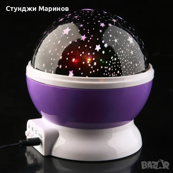 Нощна лампа детски планетариум. Цветове - Син, Розов, Лилав / Материал: пластмаса, метал; Сменяема крушка; Подходяща възраст: 0-12 години./ има USB кабел за зареждане, но може да работи и с батерии - 3бр