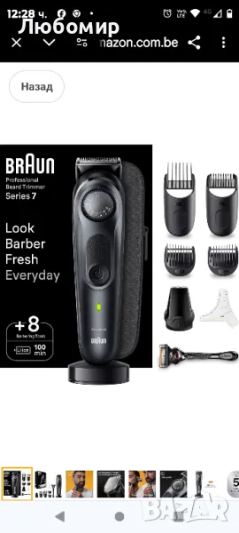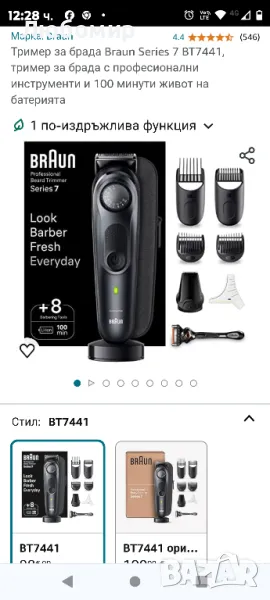 Тример за брада Braun Series 7 BT7441, тример за брада с професионални инструменти и 100 минути живот на батерията.Професионален външен вид всеки ден: върховна прецизност и перфектен контрол с машината за подстригване на брада Braun Series 7.Перфектен контрол на върха на пръстите ви: изберете от 40 настройки за дължина на прецизни интервали от 0,5 mm с прецизното копче PrecisionWheel.Подстригвайте и оформяйте брадата си с прецизност и увереност у дома: висококачествените професионални инструменти помагат за постигане на прецизни линии, равномерни градиенти и еднакви дължини, за безупречен завършек