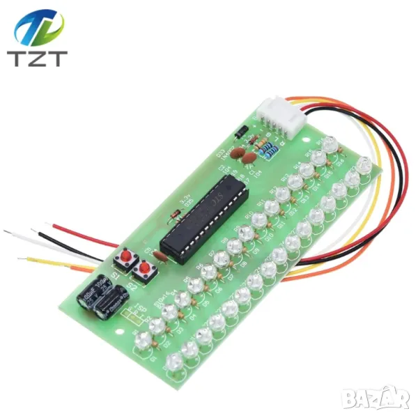 Този DIY LED VU Meter (индикационен модул) е електронен комплект, предназначен за визуално показване на нивото на аудио сигнал чрез LED диоди. При правилно сглобяване модулът отразява силата на входящия звуков сигнал, като по-силният звук кара повече LED диоди да светят, създавайки динамична визуална индикация на звукоусилването. Подобни VU метри обикновено използват интегрални схеми като KA2284, които управляват светлинния „бар“ на LED-ите според аудио нивото.