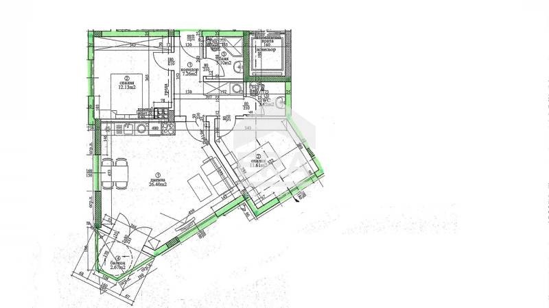 ЕРА Вива продава тристаен апартамент в новострояща се сграда в района на Базар Левски, гр. Варна. Имотът е със застроена площ от 79 кв.м. /95.84 кв.м. с общите части/ и е със следното разпределение: коридор /7.26 кв.м./, дневна с кухня /26.40 кв.м./ с балкон /2.67 кв.м./, спалня /12.13 кв.м./, втора спалня /11.61 кв.м./, баня и отделна тоалетна. Статут на апартамент. Изложението е югозападно. Степен на завършеност по БДС - на шпакловка и замазка, с поставена ПВЦ дограма и блиндирана входна врата. Към жилището има прилежащо избено помещение с площ 2.03 кв.м.