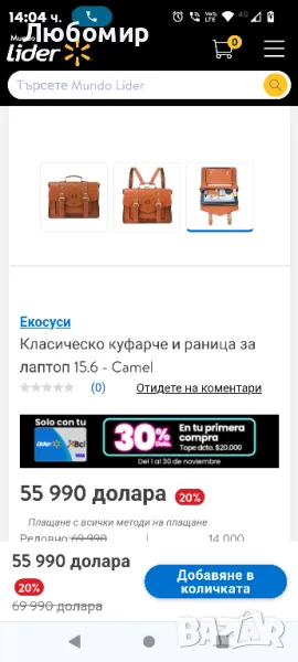Класическо куфарче и раница за лаптоп 15.6 - Camel