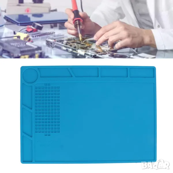 Такъв силиконов мат е незаменим при електронни ремонти, сервизни задачи или сглобяване на платки (PCB), защитавайки вашия работен плот от изгаряния, запоячна паста и драскотини.