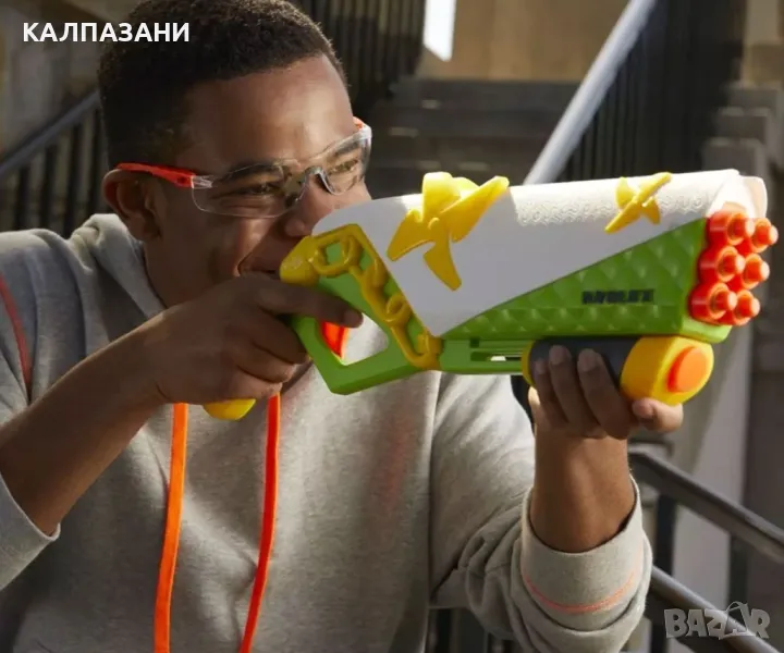 Бластерите на Nerf Roblox се вдъхновяват от игрите Roblox. Всеки бластер включва специален код, който ви позволява да осребрите изключителен виртуален артикул в Roblox. Има капацитет за 6 стрелички, включва 6 стрелички Nerf Elite. Заредете стреличките, преместете плъзгача за зареждане и дръпнете спусъка, за да изстреляте 1 стреличка.