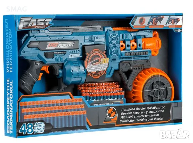Картечница със синьо-оранжев Терминатор и 48 дунапренени куршума S_1231543 → Обява 48067076