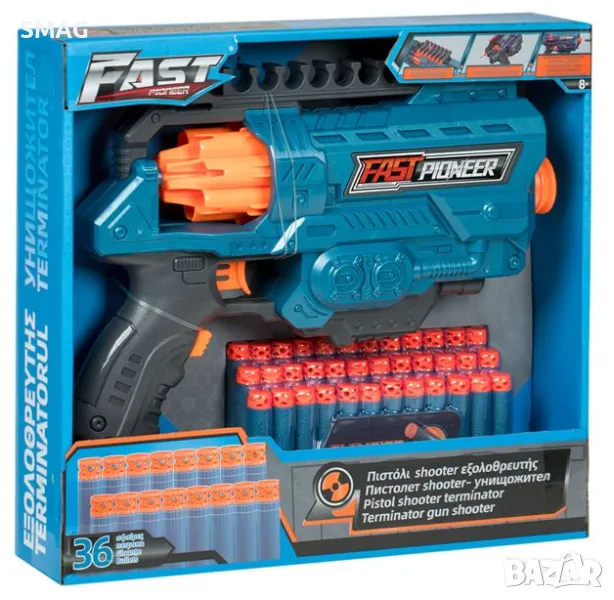 Картечница със синьо-оранжев Терминатор и 36 пенопластови куршума S_1231612 → Обява 48067112