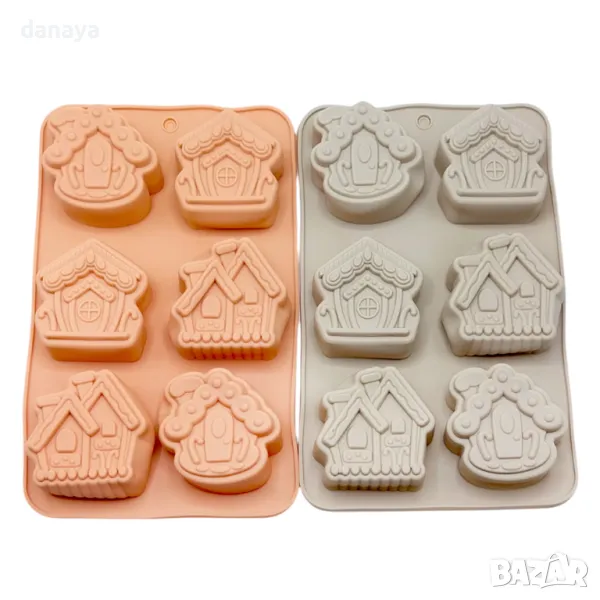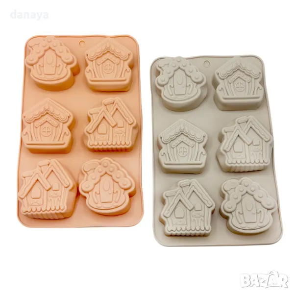 5478 Силиконова форма Коледни къщички, 6 гнезда