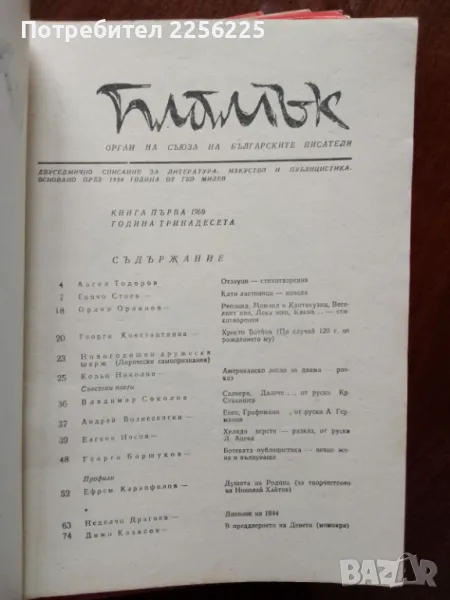 Списание Пламък 1969 г .Цена 2лв /бр.Двуседмично списание за литература,изкуство и публицистика.Основано през 1924г от Гео Милев. Всички 24 броя ( продават се всички заедно ) за 45лв .Много добро състояние. Цената е без коментар.
