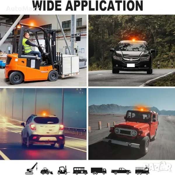 ANTOM LED стробоскоп, 12-24v LED светлини с висока яркост, кехлибарена светлина с магнитна основа, захранващ кабел за запалка 10 фута, аварийна мигаща предупредителна светлина за превозно средство,...
