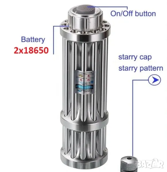 Лазер с НАЙ-ГОЛЯМ РАЗМЕР 21 СМ ЗА ДВЕ (2) х 18650 БАТЕРИИ!!! Няколко пъти по-мощен от моделите с 1 батерия или 2х16340 батерии!