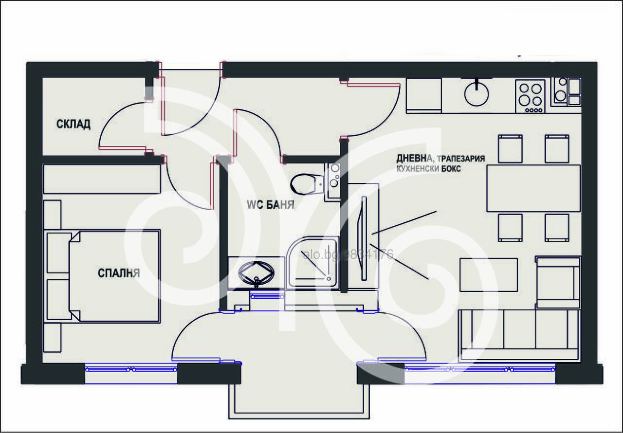 Жилището се състои от дневна с трапезария и кухненска част,самостоятелна спалня, баня с тоалетна, склад който може да се усвои и спалнята да се разшери и гляма тераса, обща за двете стаи. Ще бъде завършен на тапа , с възможност за завършване до ключ . Жилището е светло и слънчево, със западно изложение.В цената е включен Проект за обзавеждане и 3D визуализации. Апартаментът е подходящ за закупуване с цел инвестиция или за собствено ползване.