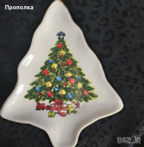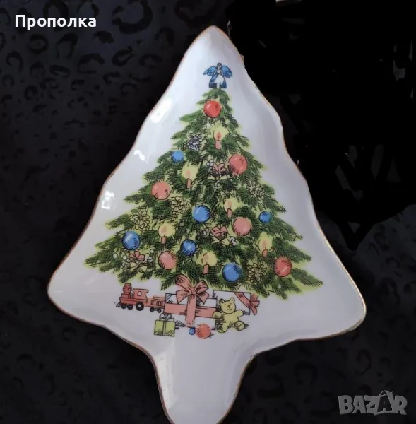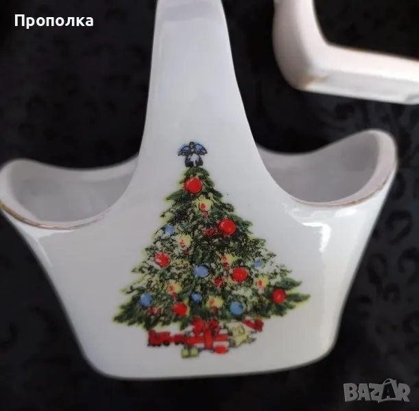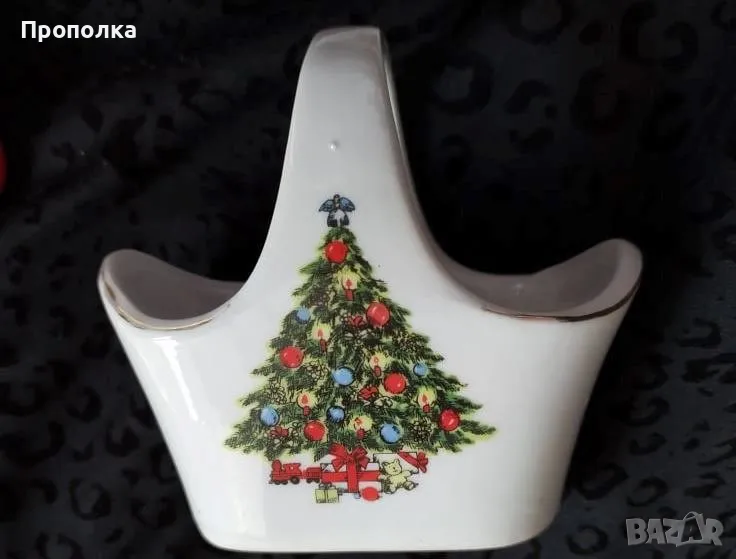 Ретро Коледен комплект, 4 части - кошничка и чинийки с елхички → Обява 48070414